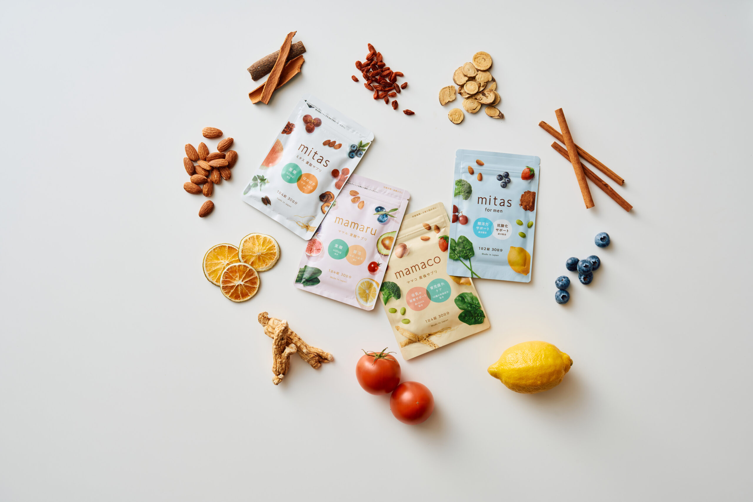 mitas series 妊活期、妊娠期、産後まで、からだの「いま」に合わせた時期別葉酸サプリです。